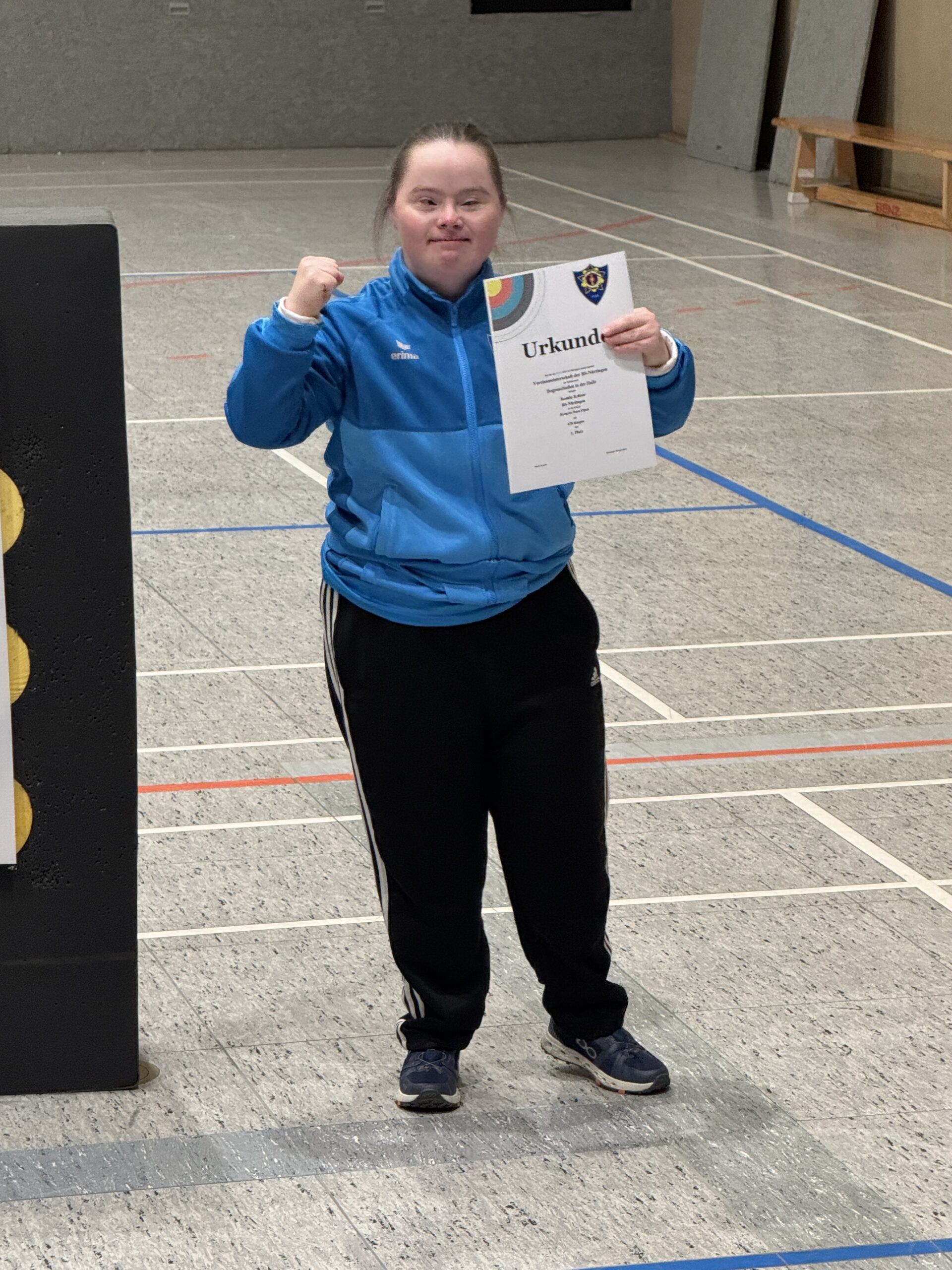 In der Klasse mit Handicap startete Rosalie Krämer und nahm jubelnd ihre Urkunde für ihren Platz 1 mit 470 Ringen. entgegen